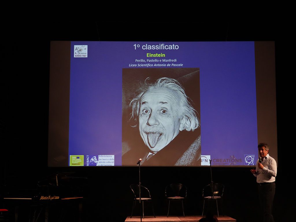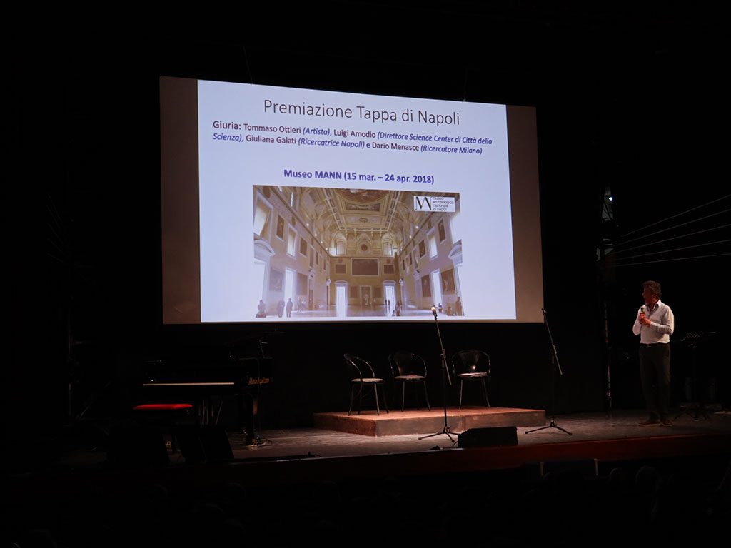 Tra le opere esposte, venerdì al Teatro Diana sono state premiate le opere più votate, anche in base a creatività e apprezzamento sui social. In totale sono state assegnate 24 borse di studio, messe a disposizione dei ragazzi, dall’INFN, dal CERN, dalla Università Federico II, dal Dipartimento di Fisica della Federico II, dalla Fondazione Banco di Napoli. dalla Fondazione Cassa di Risparmio di Firenze e dal Rotary.