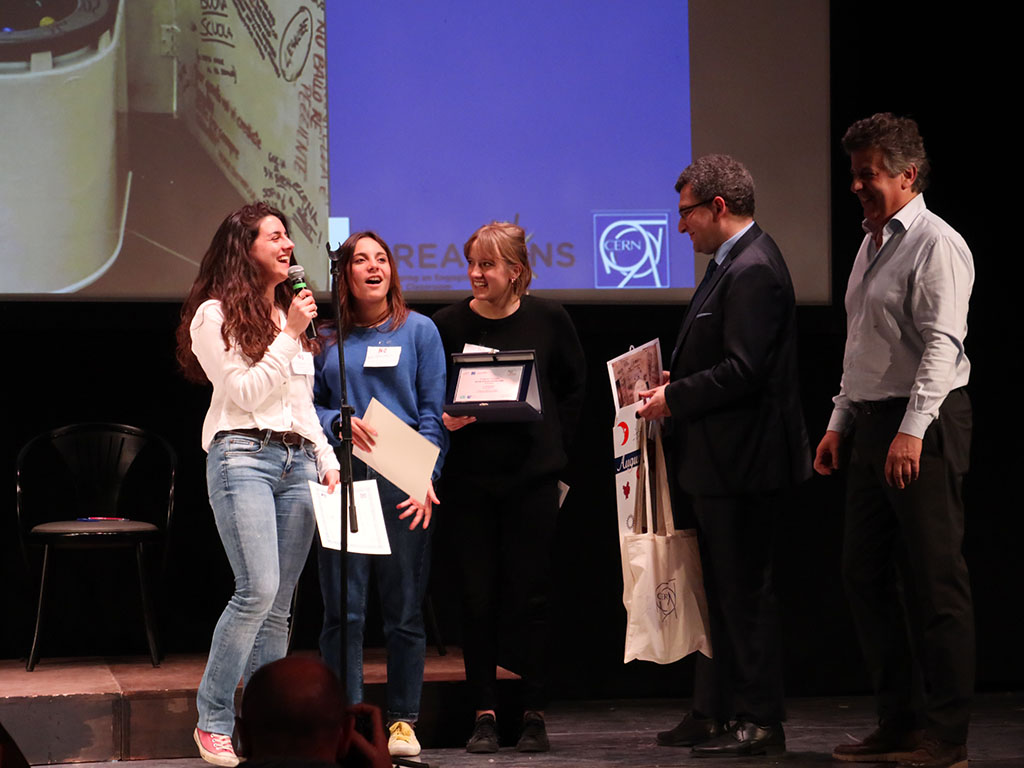 Tremila studenti coinvolti, quaranta scuole superiori partecipanti e a spuntarla sono state tre simpaticissime ragazze del Liceo Artistico ad indirizzo Raro Istituto Caselli di Napoli: Chiara Tornese, Claudia Pistone e Rita Vitale che con la loro opera “Void inside Matter” hanno conquistato il primo premio nazionale e parteciperanno alla prestigiosa Master-Class della durata di tre giorni presso i laboratori del CERN di Ginevra.