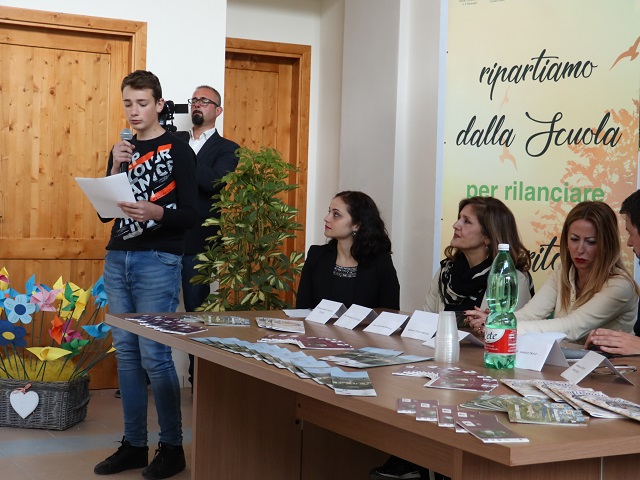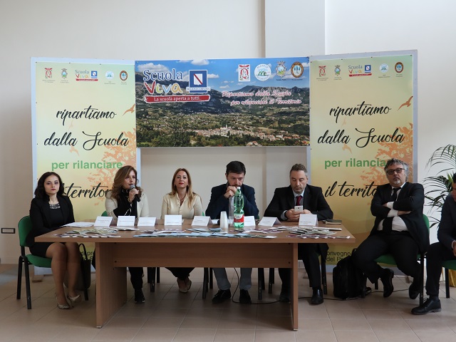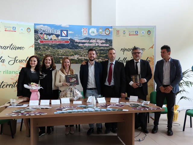 Giornata di festa a Cusano Mutri dove, mercoledì scorso, nell’auditorium dell’Istituto Comprensivo J. F. Kennedy, scuola fresca di premiazione a Cinisi in Sicilia nell’ambito del Concorso “Azioniamo la memoria. 40 anni senza Peppino Impastato”, si è svolto l’evento di presentazione della Seconda Annualità del Programma “Scuola Viva”. Un evento importante, ricco di partecipazione e di figure di spicco col Dirigente Scolastico Caterina Errichiello ad ospitare l’Assessore alla Pubblica Istruzione della Regione Campania Lucia Fortini, il Sindaco della cittadina Giuseppe Maria Maturo, il Vicepresidente dell’ASD Matese Escursioni Mario Prece, l’Assessore alla Pubblica Istruzione del Comune di Cusano Mutri Maria Concetta Petrillo e l’esperto di Fondi Strutturali Gennaro Di Vincenzo.