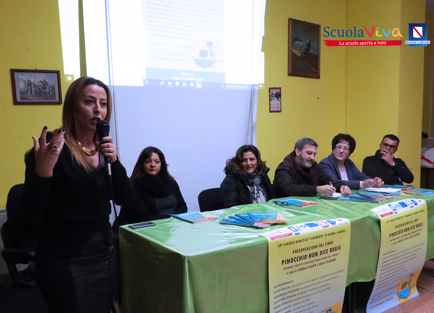 Ogni anno, ogni storia, confluisce in un Festival: il Letteratour, di cui abbiamo raccontato quest’estate ma non soltanto. Proprio ieri, infatti, per inaugurare col piede giusto la terza annualità e concludere la seconda alla grande è stato presentato un coloratissimo Albo edito da Ad Est dell’Equatore. La storia è quella di Pinocchio ma in chiave rivisitata, dalle idee e i sogni dei bimbi di Barra, che hanno riscritto, disegnato e colorato un Pinocchio tutto loro siriano e che non dice bugie. Hanno partecipato alla presentazione tutti coloro che, insieme, hanno lavorato per far sì che l’albo prendesse forma, con l’entusiasta neo-Dirigente Scolastico Carmela Iaccarino, Carola Flauto curatrice dei testi, Luigi Filadoro curatore delle immagini, Maria Rosaria Vado che ha curato le grafiche del libro, Carlo Zivello editore di Ad Est dell’Equatore e, a condividere un momento così importante, l’Assessore Lucia Fortini. Un piccolo, grande libro carico di significato e di valori che fa del 69° Circolo Barbato una vera Fabbrica dell storie, una vera comunità attiva e una super-Scuola Viva.