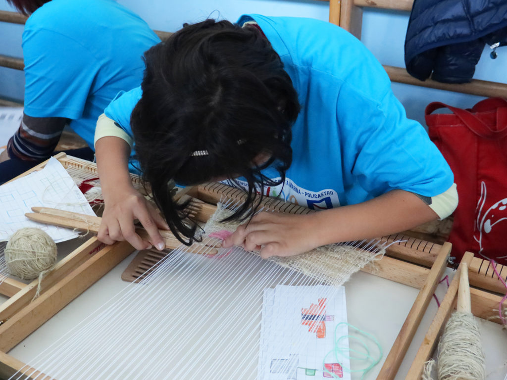 Ed infine, un laboratorio, che è una piccola chicca di Scuola Viva, che racchiude in sé tutto quello che questo istituto porta avanti con Scuola Viva: il recupero di una tradizione, attraverso la lavorazione delle fibre naturali e della ginestra e cui quest’anno si è aggiunta anche la tintura dei tessuti, sempre, rigorosamente con colori derivanti d frutta e fiori, insomma, solo con ciò che ci regala la natura!