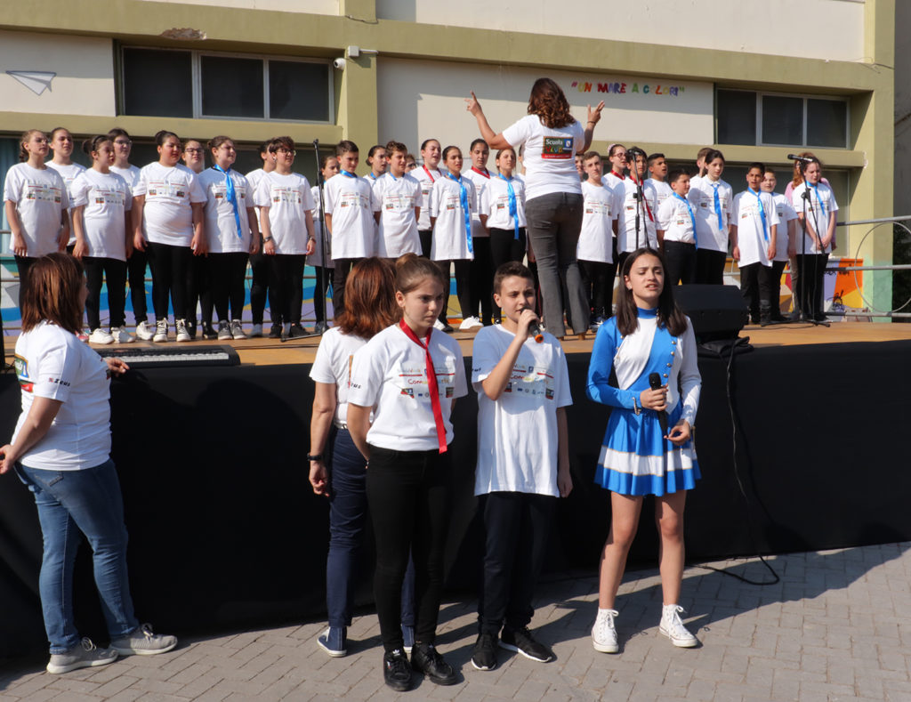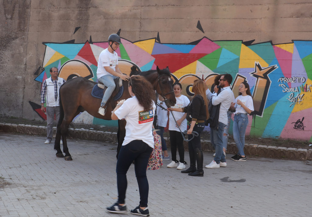 Anche quest’anno, quindi, per festeggiare insieme la conclusione delle moltissime attività svolte il pomeriggio – sono addirittura 10 i moduli messi a disposizione degli studenti, con altrettanti partner – si è messo a punto un percorso di visita, lungo tutta la Scuola. Un percorso proprio come quelli delle mostre, ma molto più entusiasmante per i ragazzi, perchè li ha visti coinvolti ogni minuto, nelle più disparate attività! C’era chi dipingeva un enorme cubo con i colori Scuola Viva, chi giocava a pallavolo, chi mostrava come prendersi cura di un meraviglioso cavallo. Chi raccontava storie, chi le disegnava a fumetti. E poi, ancora c’era chi suonava colonne sonore dei film o cantava i successi intramontabili dei Queen, fianco a fianco con i propri compagni dell’orchestra o del coro scolastico. Chi, invece, faceva roteare in aria le clavette ballando tra le majorettes del corpo di ballo scolastico.