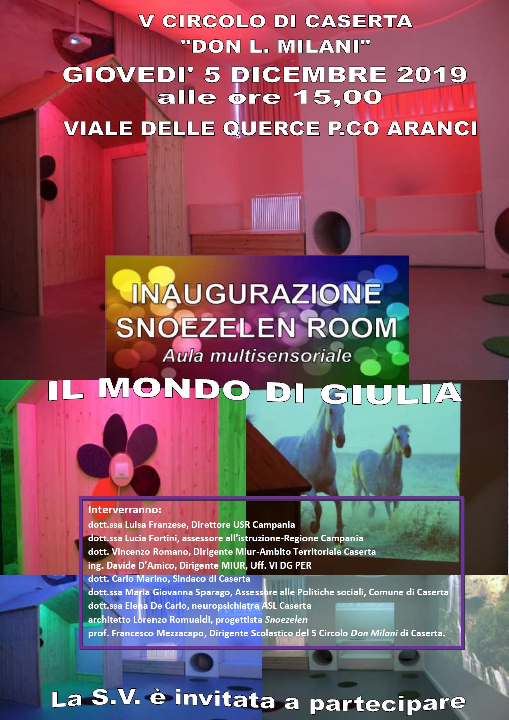 Le aule multisensoriali in Italia non sono moltissime, ma una in Campania ha inaugurato proprio qualche giorno fa, si chiama “Il mondo di Giulia” e si trova al V Circolo Didattico “Don Milani” di Caserta.
