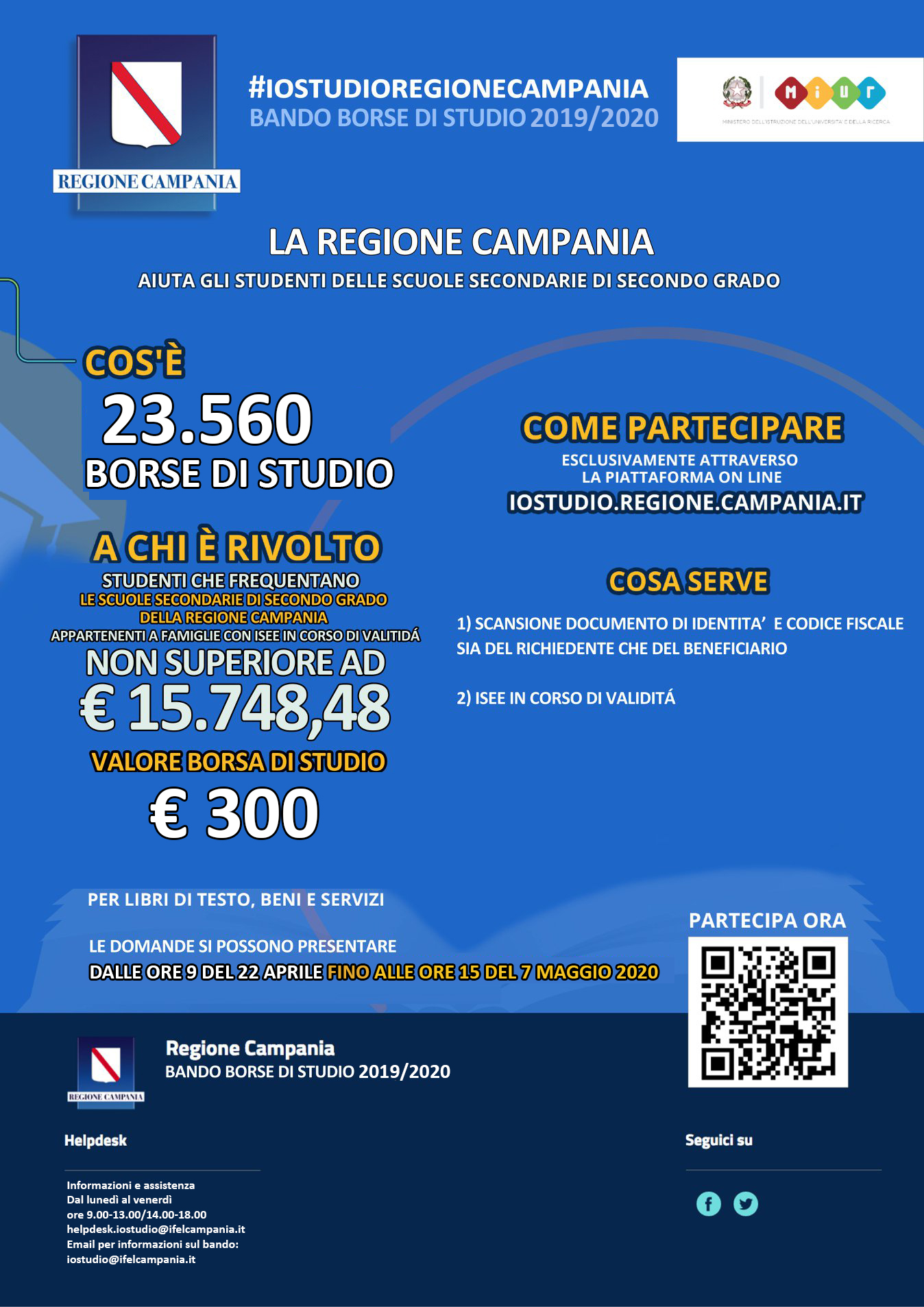 Per presentare domanda per la borsa di studio ioStudio 2020 c’è bisogno di: