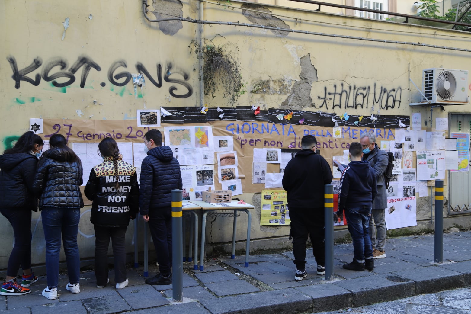 Un lungo striscione con su scritto “Per non dimenticare” da un foglio bianco si è trasformato in un grande murales di pensieri, parole scritte dagli studenti ma lette e comprese anche dai più grandi che, per mattina, non hanno potuto passare con indifferenza o con la fretta della mattina, senza fermarsi per un momento a riflettere.