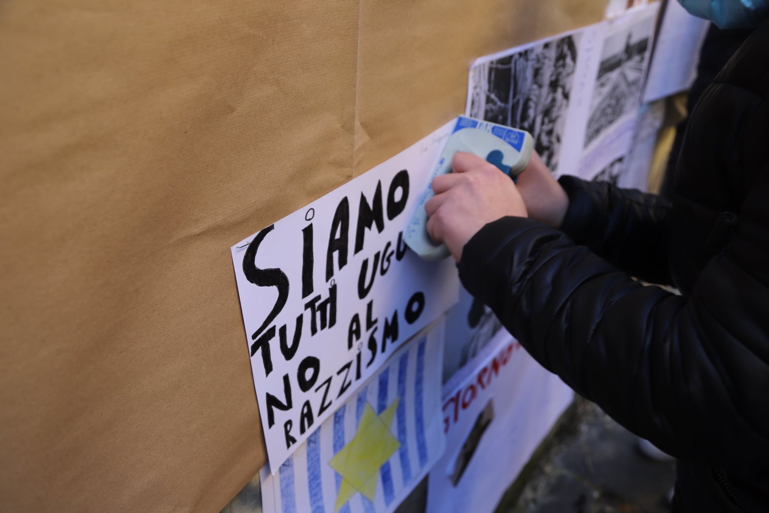 Anche i piccoli della primaria ed i ragazzi della secondaria di primo grado Adelaide Ristori hanno ricordato la Giornata della Memoria con una sorta di flash mob che ha coinvolto non soltanto la scuola ma il comprensorio dell’istituto, i passanti e i genitori, portando i propri pensieri, disegni, lavori fuori dalla scuola, per strada.