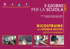 La Regione Campania, in collaborazione con Città della Scienza, organizza la XX edizione della “3 Giorni per la Scuola” per i giorni 10, 11 e 12 novembre 2021. La kermesse, ormai diventata appuntamento annuale, prevede tre giorni di webinar, conferenze, seminari, dibattiti e workshop online e in presenza in cui docenti, dirigenti scolastici, studenti, educatori, formatori ed esperti si confronteranno sulle grandi trasformazioni che la scuola sta affrontando in questo particolare momento storico, per scambiarsi esperienze, metodi e pratiche, su quali strategie e strumenti sono e saranno necessari per qualificare la didattica, la scuola di domani, e su come progettare una didattica sempre più coerente con le sfide della innovazione e dell’inclusione.