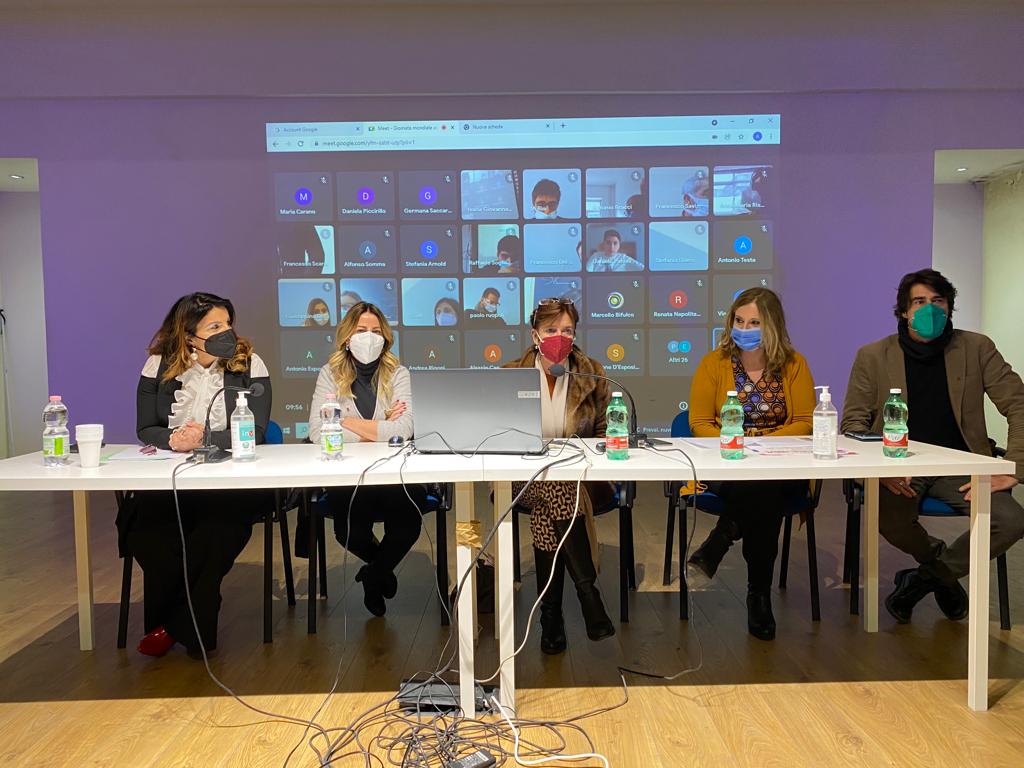 Con la Dirigente scolastica del I.T.I A.Righi Giovanna Martano, l’Assessore alla Scuola, alle Politiche Sociali e alle Politiche Giovanili della Regione Campania Lucia Fortini, Melicia Comberiati portavoce dell’Alleanza contro la povertà, Armando Falco Presidente Rotaract Napoli Nord – Est, Vincenzo De Falco Presidente Anlaids Sezione Campania e tanti altri medici ed esperti che hanno portato il proprio contributo.