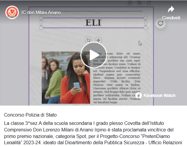 La scuola, attraverso la propria pagina Facebook, ha diffuso lo spot realizzato: