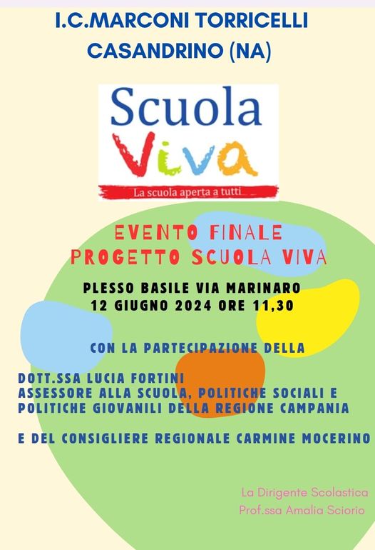 All’IC Marconi Torricelli di Casandrino, si è tenuta la manifestazione finale del Progetto Scuola Viva dal titolo “A scuola di opportunità”. All’evento, anche l’Assessore alla Scuola, alle Politiche Sociali e Giovanili della Regione Campania, Lucia Fortini.
