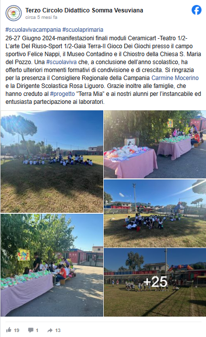 Al 3° Circolo Didattico di Somma Vesuviana, concluso il progetto Scuola Viva “Scuola Viva Terra mia”. Il 26 ed il 27 giugno, le manifestazioni finali.