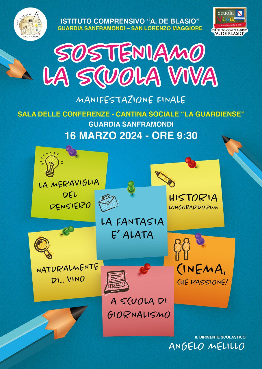 In questo caso, parliamo dell’IC De Blasio di Guardia Sanframondi che ha concluso i moduli del progetto Scuola Viva dal titolo “Sosteniamo la Scuola Viva” nel mese di luglio 2023. E ha tenuto la manifestazione finale il 16 luglio 2024.