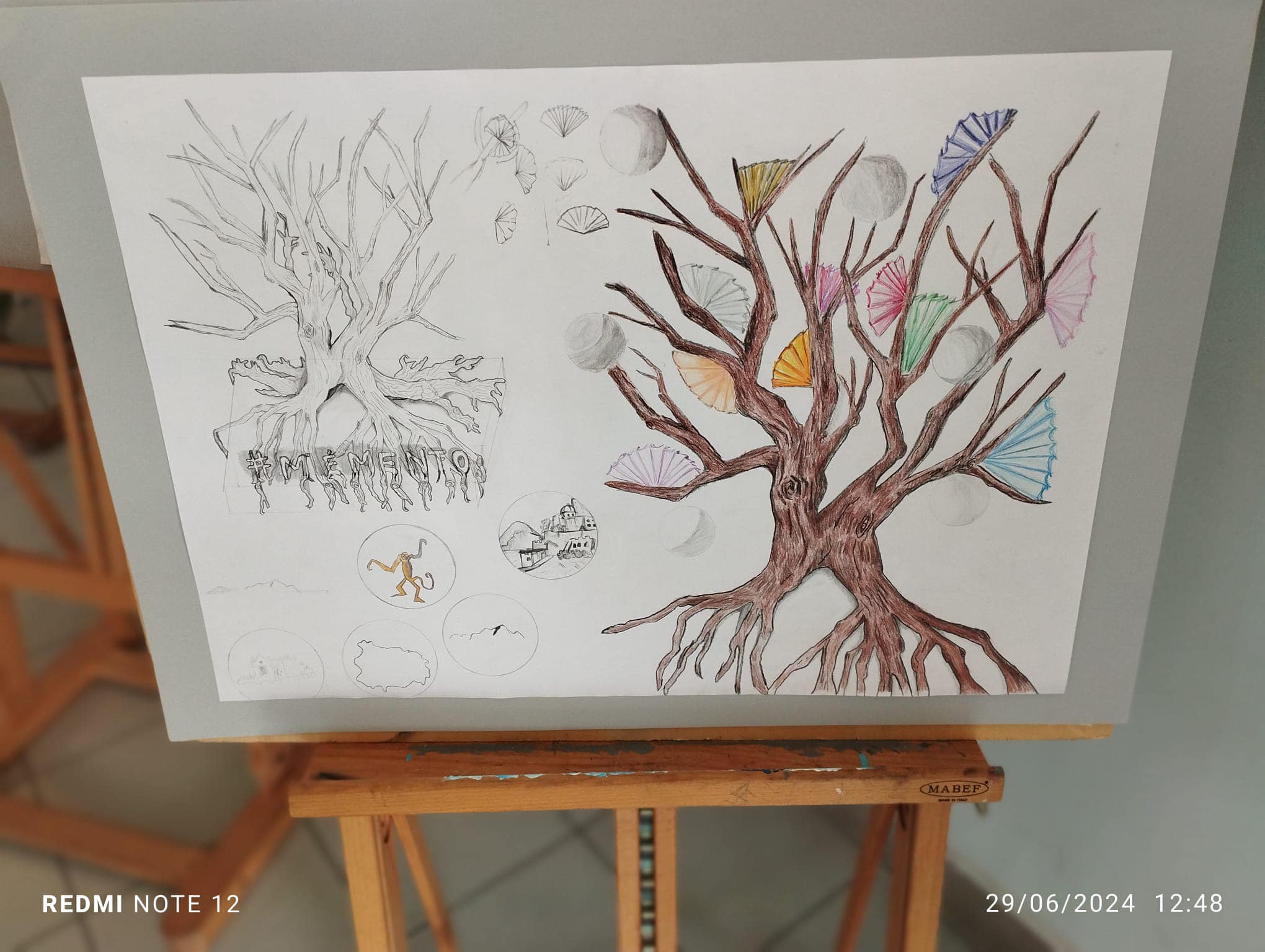 I ricordi del gigante non sono andati mai persi: si sono diffusi in tutta l’isola, caratterizzandone ogni luogo. Essi hanno reso l’incantevole isola un’oasi bramata da ogni viaggiatore, una sorta di “Itaca” per ogni suo abitante che, guardando l’orizzonte, ogni qualvolta vi si allontana, è speranzoso di tornarvi. Memento è l’albero del ricordo dalle cui radici, nel substrato, fluiscono i ricordi. L’albero fiorisce e sui rami si accendono sfere in cui ritornano fatti e situazioni lontani nel tempo e nello spazio. Tradizioni e leggende che creano identità emozionali.