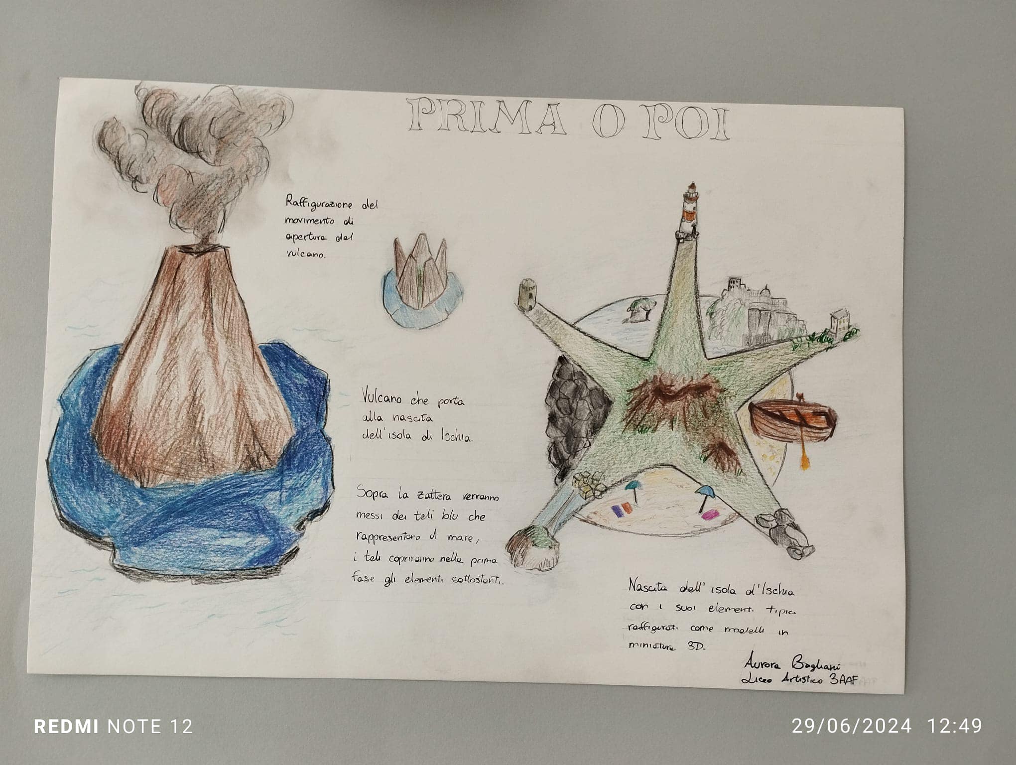- Ischia terra d’incanto e di virtù, ispirata principalmente ai bozzetti “Pangu crea il cielo e la terra” (Elisa Zhang, Manuela Esposito), “La leggenda dell’uovo di Virgilio” (Trani Luigi) e “La danza della medusa” (Vittoria Baldino). Il tema e le idee di fondo sono scaturite anche dai bozzetti di “Prima o poi” (di Aurora Bagliani), “Quando a Ischia nacque la poesia” (di Gorlani Laura, Capezza Losito Mariarosa), “#memento #alberodelricordo” (degli alunni dell’Istituto Mattei).