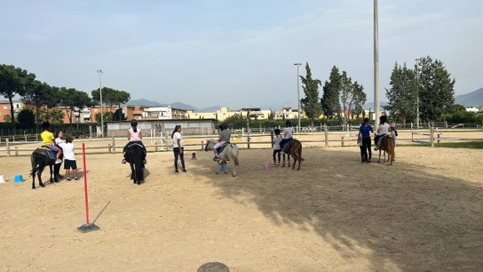 - MODULO 4 – LABORATORIO DI EQUITAZIONE. Partendo dall’educazione al rispetto della natura e del mondo animale attraverso la relazione empatica con il cavallo, questo modulo è riuscito ad avvicinare i bambini al mondo dello sport e dell’equitazione, a potenziare il benessere psicofisico e l’interazione cooperativa, aggregando gli alunni in un contesto retto da principi di collaborazione, impegno, rispetto ed ascolto degli altri. Particolarmente entusiastica è stata la partecipazione di alunni con disabilità.