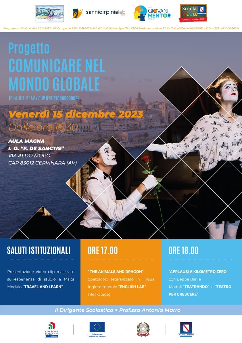 In questo caso, parliamo dell’IC Cervinara di Avellino che ha svolto la manifestazione finale del Progetto “Comunicare nel mondo globale” lo scorso 17 dicembre dopo aver realizzato i 6 moduli previsti fra i mesi di settembre e dicembre del 2023.