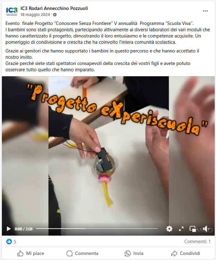 La conclusione delle attività laboratoriali è stata celebrata anche attraverso la realizzazione di un output video, pubblicato sulle pagine social della scuola: