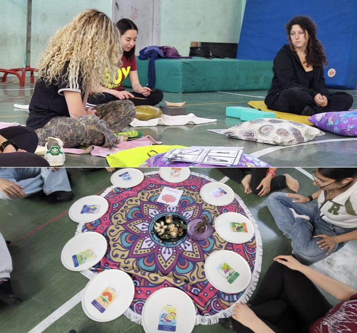 Le immagini restituiscono spazi tranquilli e immersivi, dove gli studenti assumono posizioni meditative. Un’atmosfera di armonia in cui sono immersi gli studenti intenti nella respirazione consapevole, posture ben guidate, sorrisi rilassati. Un ambiente che ha agito da catalizzatore per il benessere e ha promosso la fiducia nello studio e nelle relazioni interpersonali.