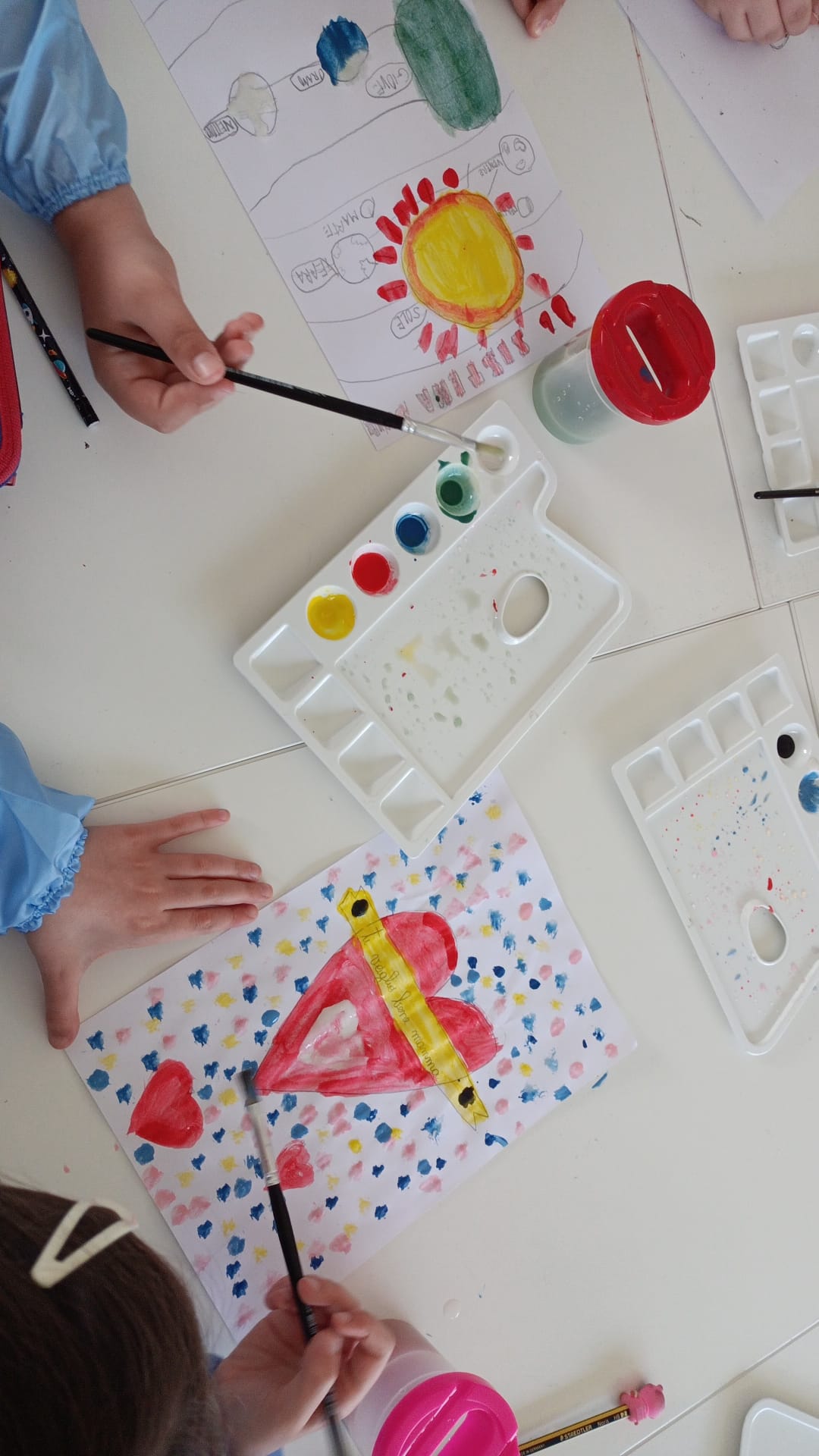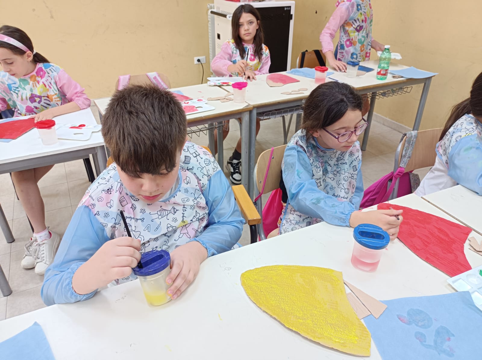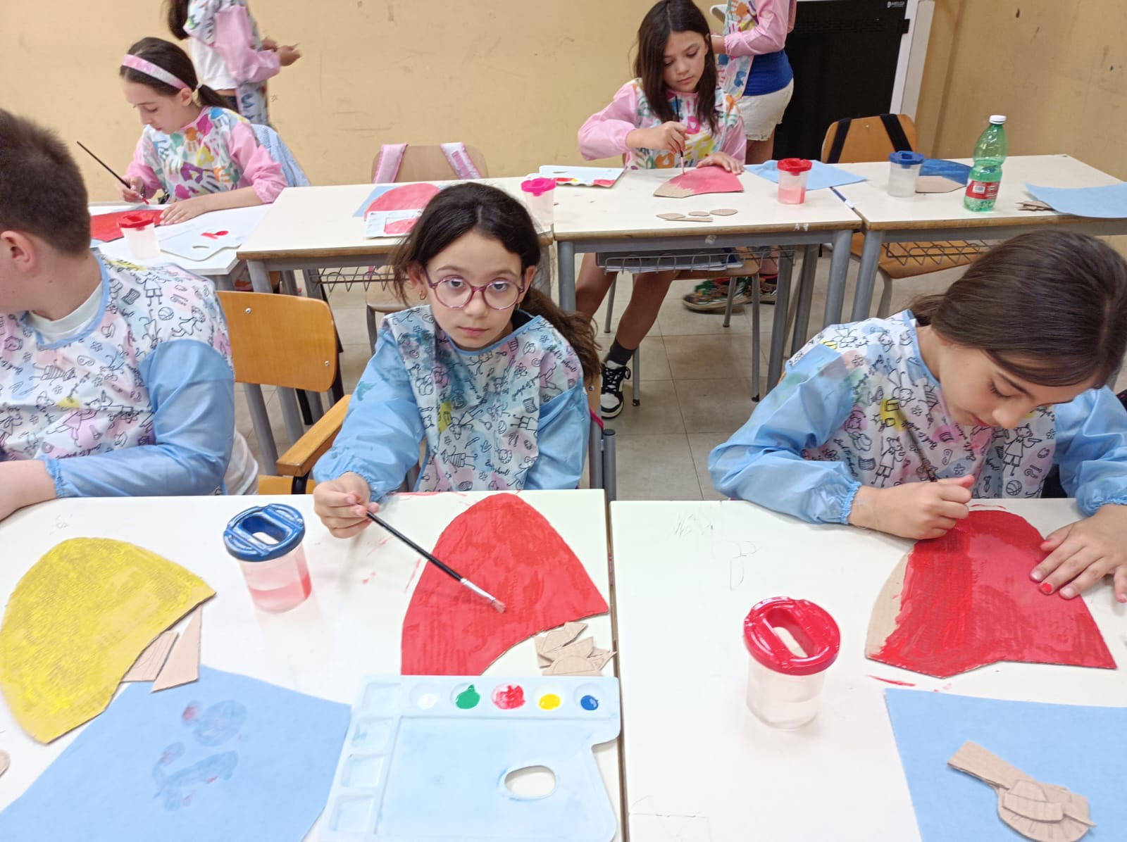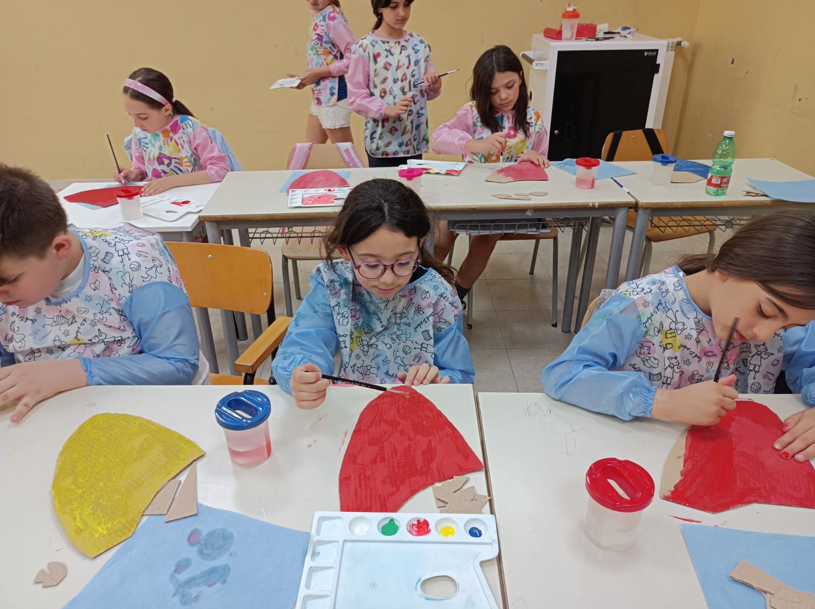 NOTE, COLORI ED EMOZIONI. Creatività e benessere emotivo sono stati al centro del modulo artistico-musicale, con laboratori di musica, pittura ed espressione personale. I bambini si sono sperimentati con strumenti musicali, canto corale e pittura libera, esplorando il linguaggio universale dell’arte. Un’atmosfera colorata e vivace, un percorso espressivo degli alunni, tra melodie, disegni e momenti di condivisione.