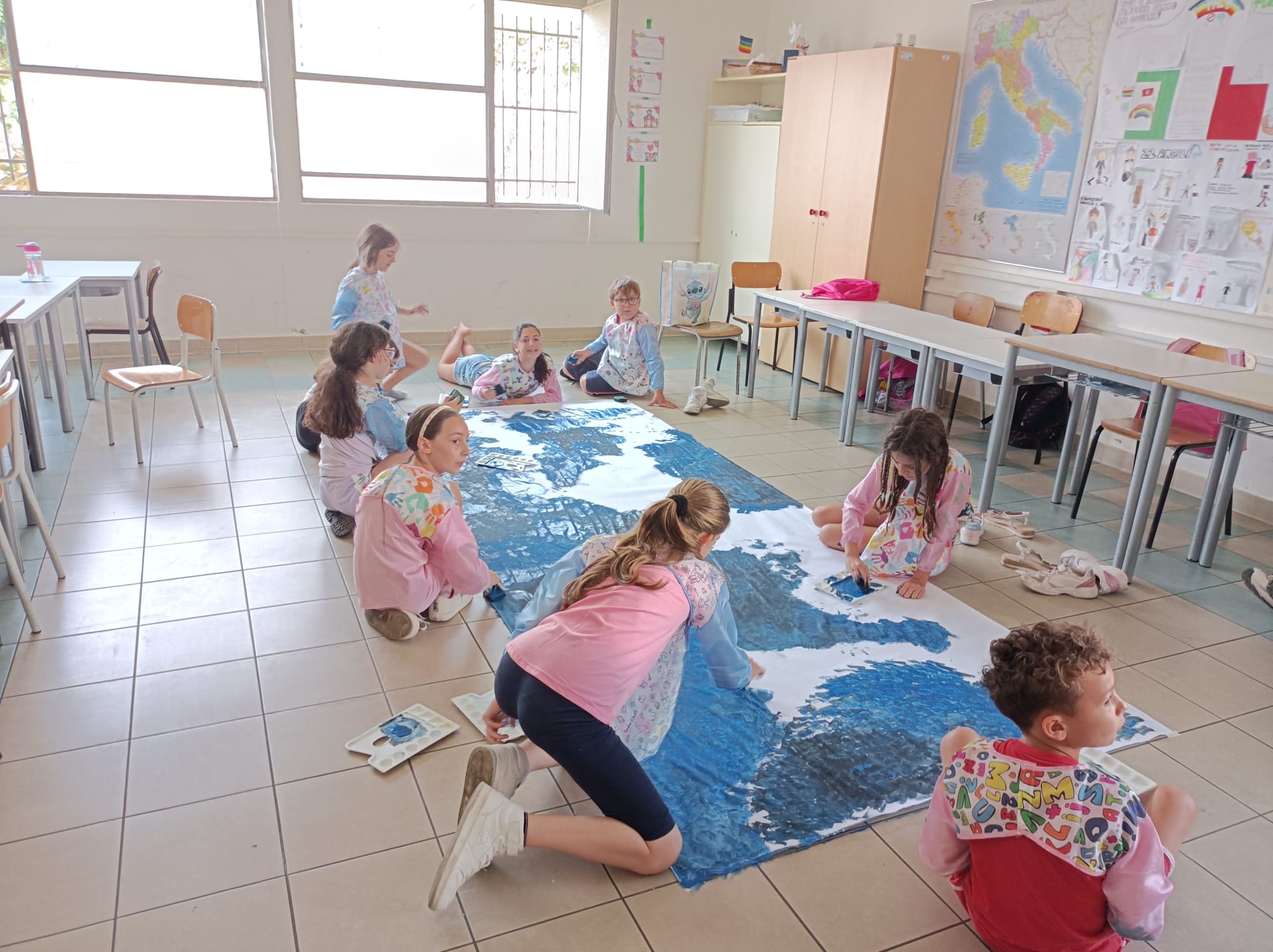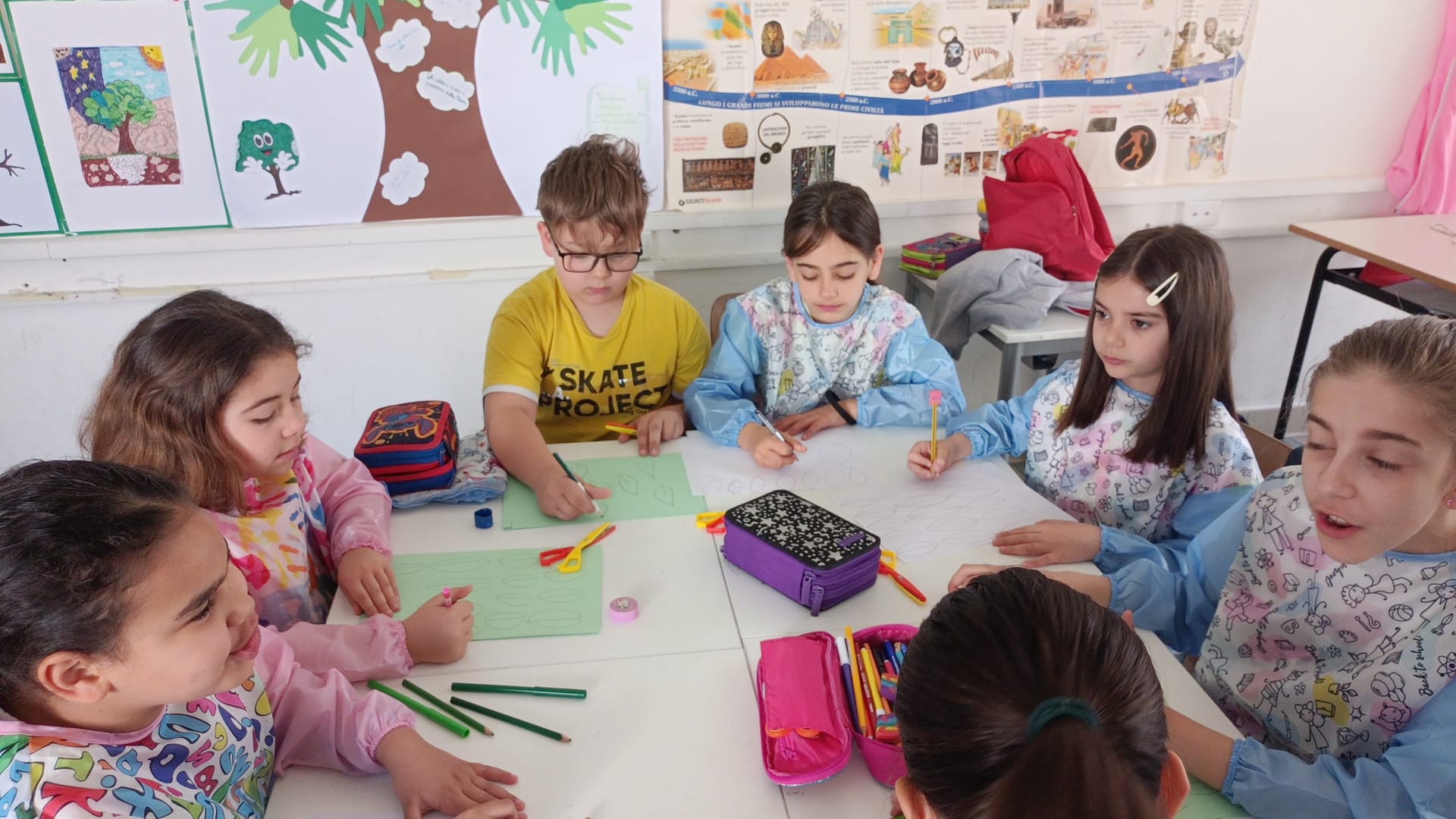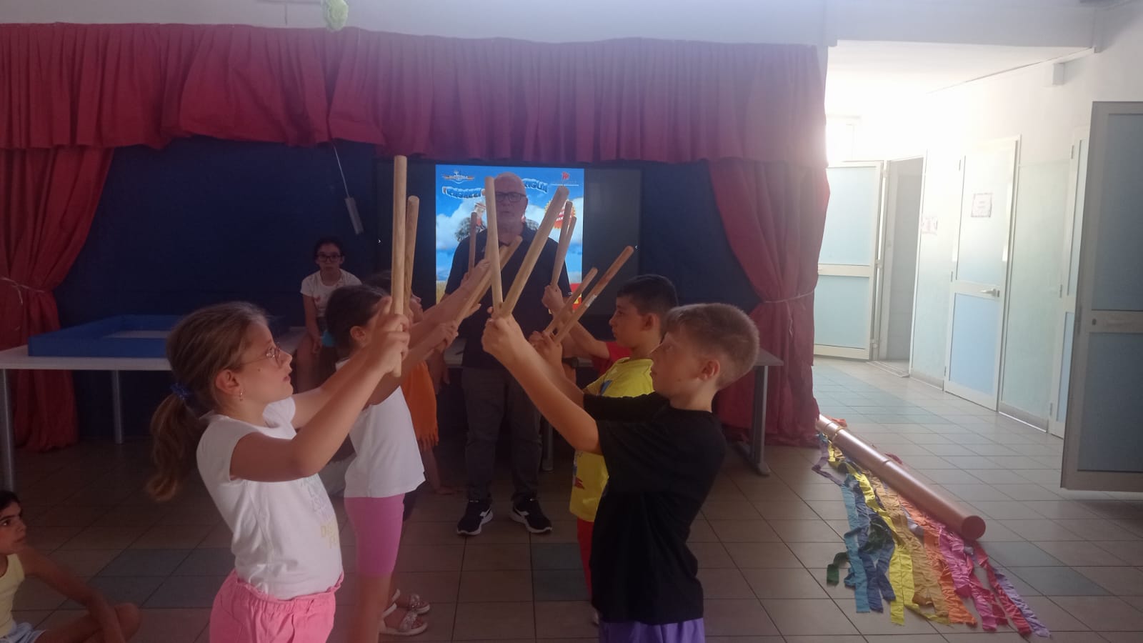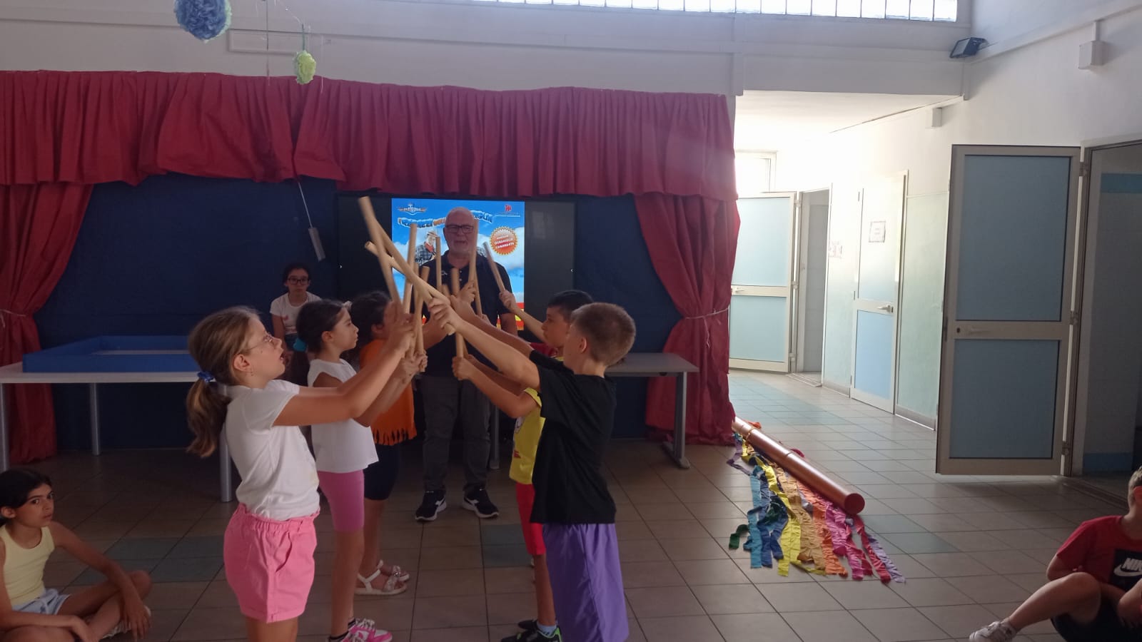 NOTE, COLORI ED EMOZIONI. Creatività e benessere emotivo sono stati al centro del modulo artistico-musicale, con laboratori di musica, pittura ed espressione personale. I bambini si sono sperimentati con strumenti musicali, canto corale e pittura libera, esplorando il linguaggio universale dell’arte. Un’atmosfera colorata e vivace, un percorso espressivo degli alunni, tra melodie, disegni e momenti di condivisione.